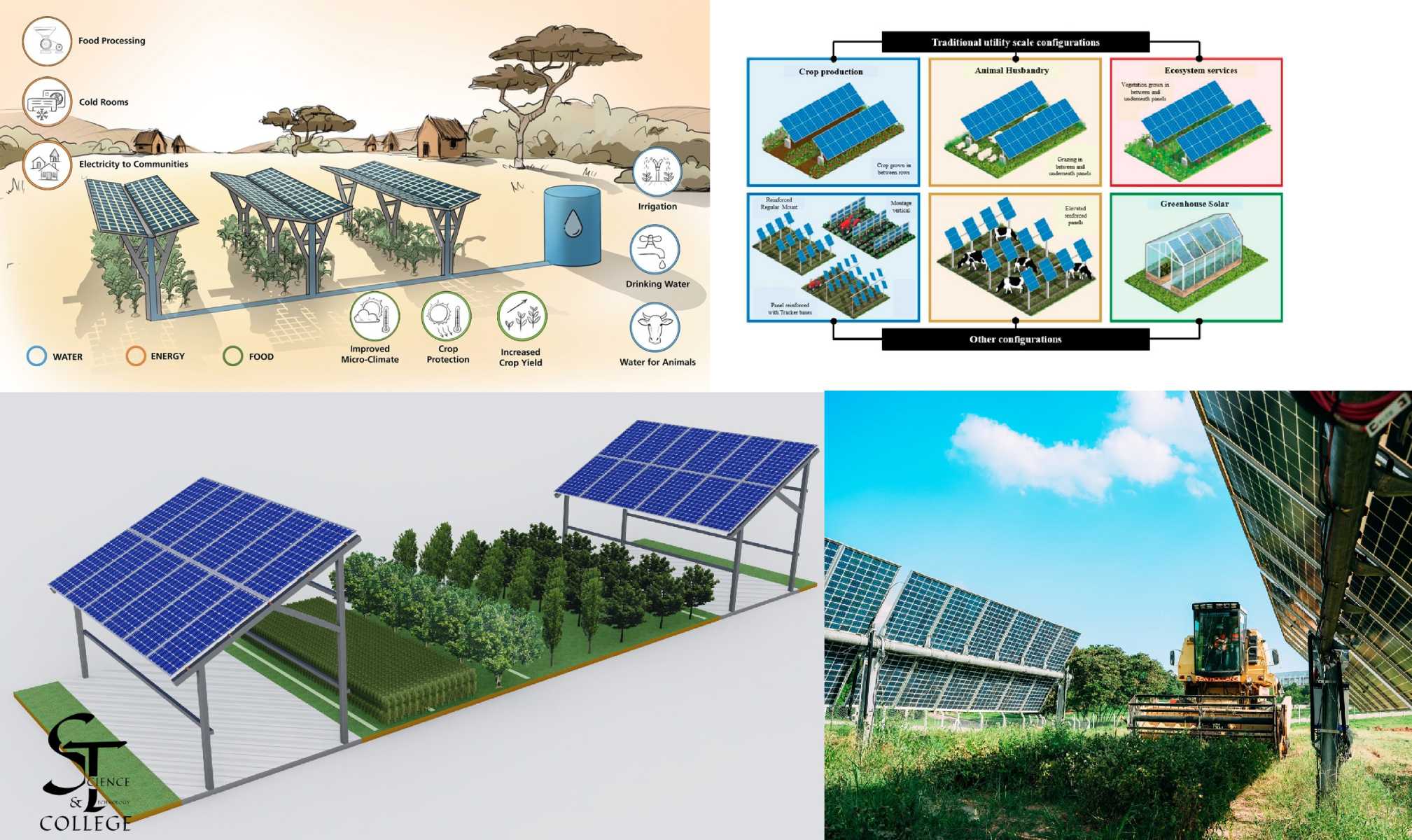 - التحديات: نسبة المساحة المستغلة للزراعة تكون منخفضة، وقد لا تكون مناسبة لجميع أنواع المحاصيل. كما أن الظلال الناتجة عن الألواح قد تؤثر على نمو المحاصيل التي تحتاج إلى ضوء شمس كامل.