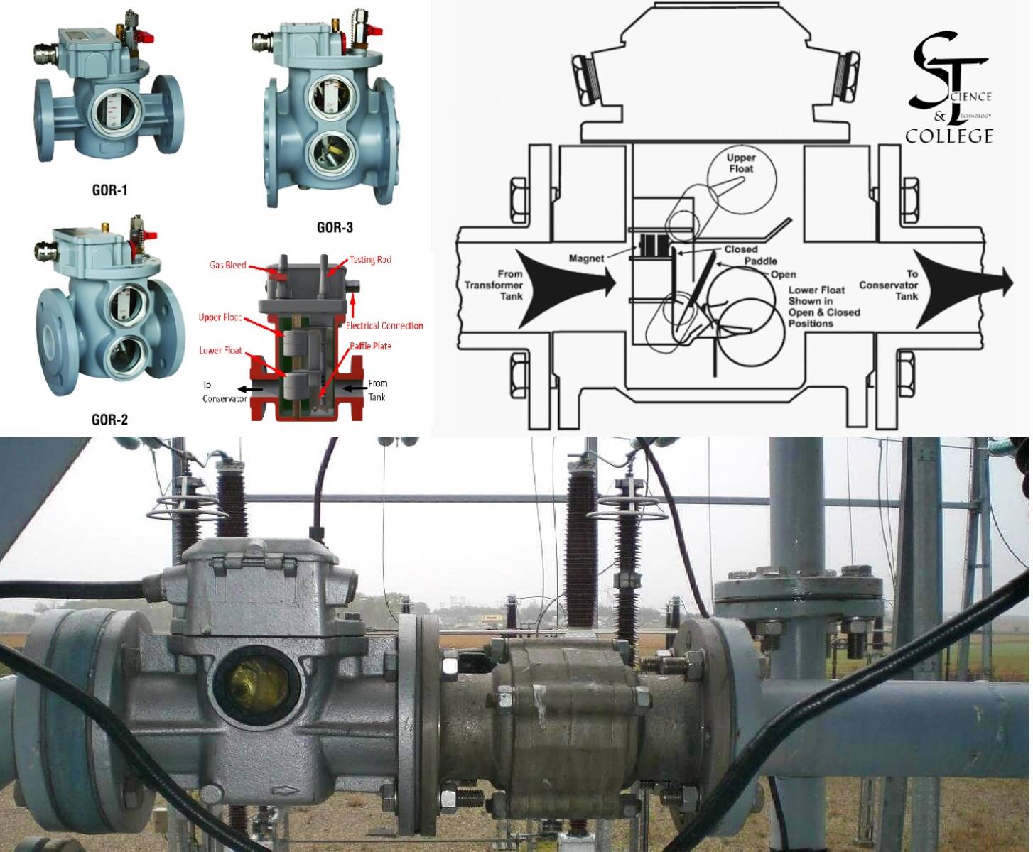 كشف الأعطال البسيطة: عند حدوث عطل بسيط (مثل ارتفاع درجة الحرارة أو عزل جزئي)، يتحلل الزيت وينتج غازات تتراكم في غرفة الغازات. يؤدي تراكم الغازات إلى انخفاض مستوى الزيت، مما يحرك العوامة العلوية ويشغل المفتاح الكهربائي. يتم إرسال إشارة إنذار لتنبيه المشغلين بوجود مشكلة تحتاج إلى فحص