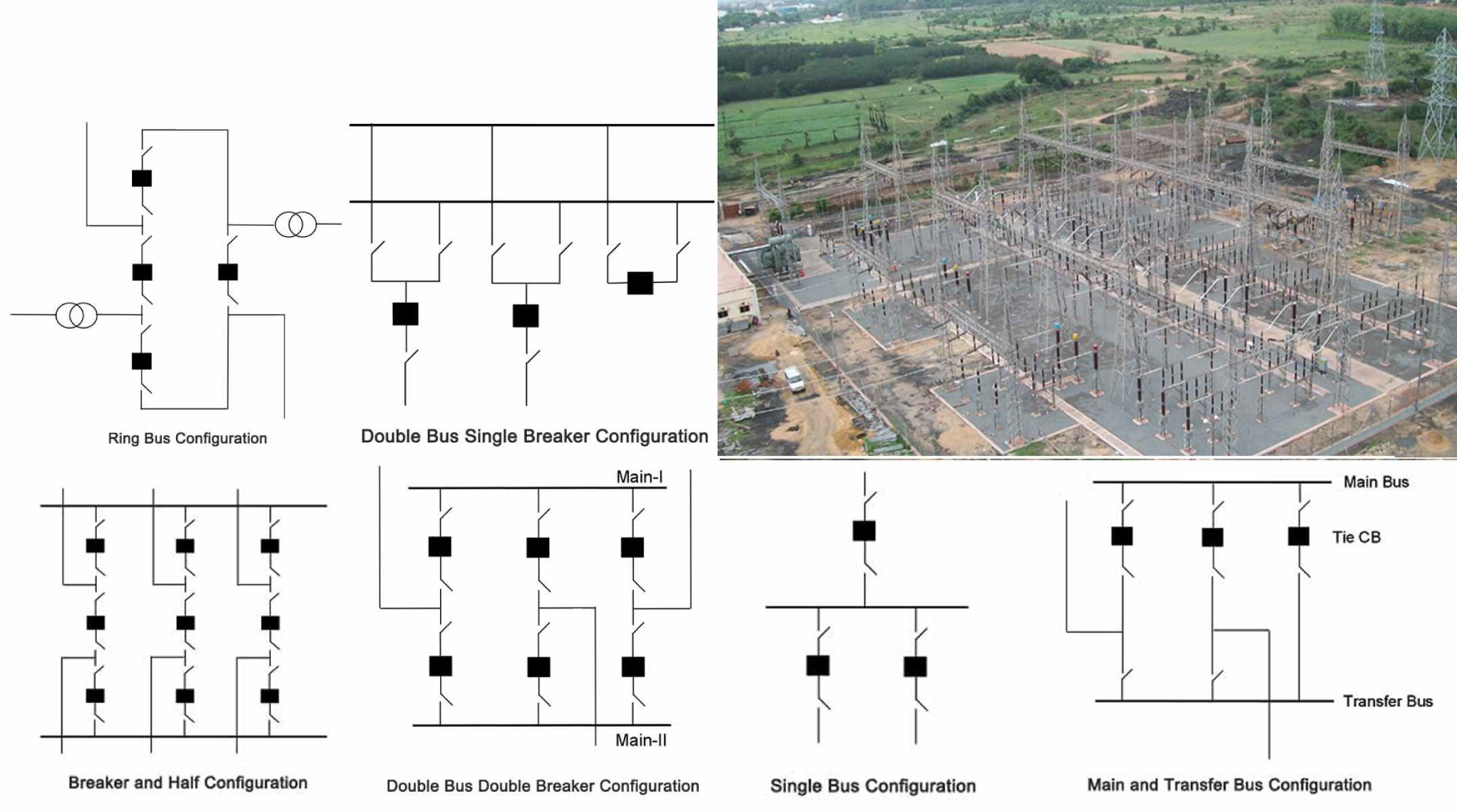 An electrical substation serves as a crucial junction point where multiple transmission lines converge. In practice, many Extra High Voltage (EHV) and High Voltage (HV) substations can have more than six lines terminating there. In substantial transmission substations, this number can exceed two dozen. The bus scheme of a substation refers to the layout of overhead bus bars and associated switching equipment, including circuit breakers and isolators. The design of the bus scheme significantly affects the substation’s operational flexibility and reliability.