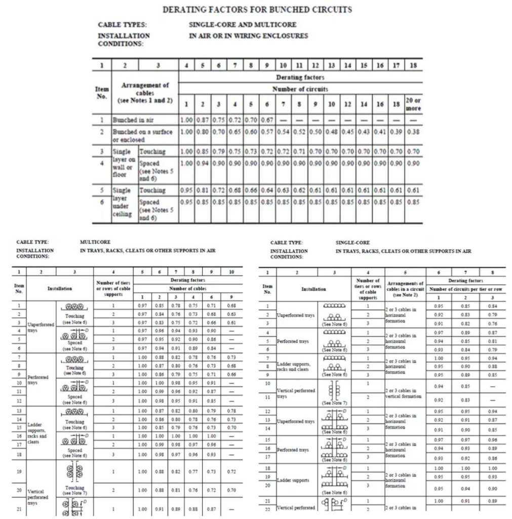 Under specific conditions, the application of derating factors may be omitted. The standard AS/NZS 3008.1 provides illustrative examples, including: