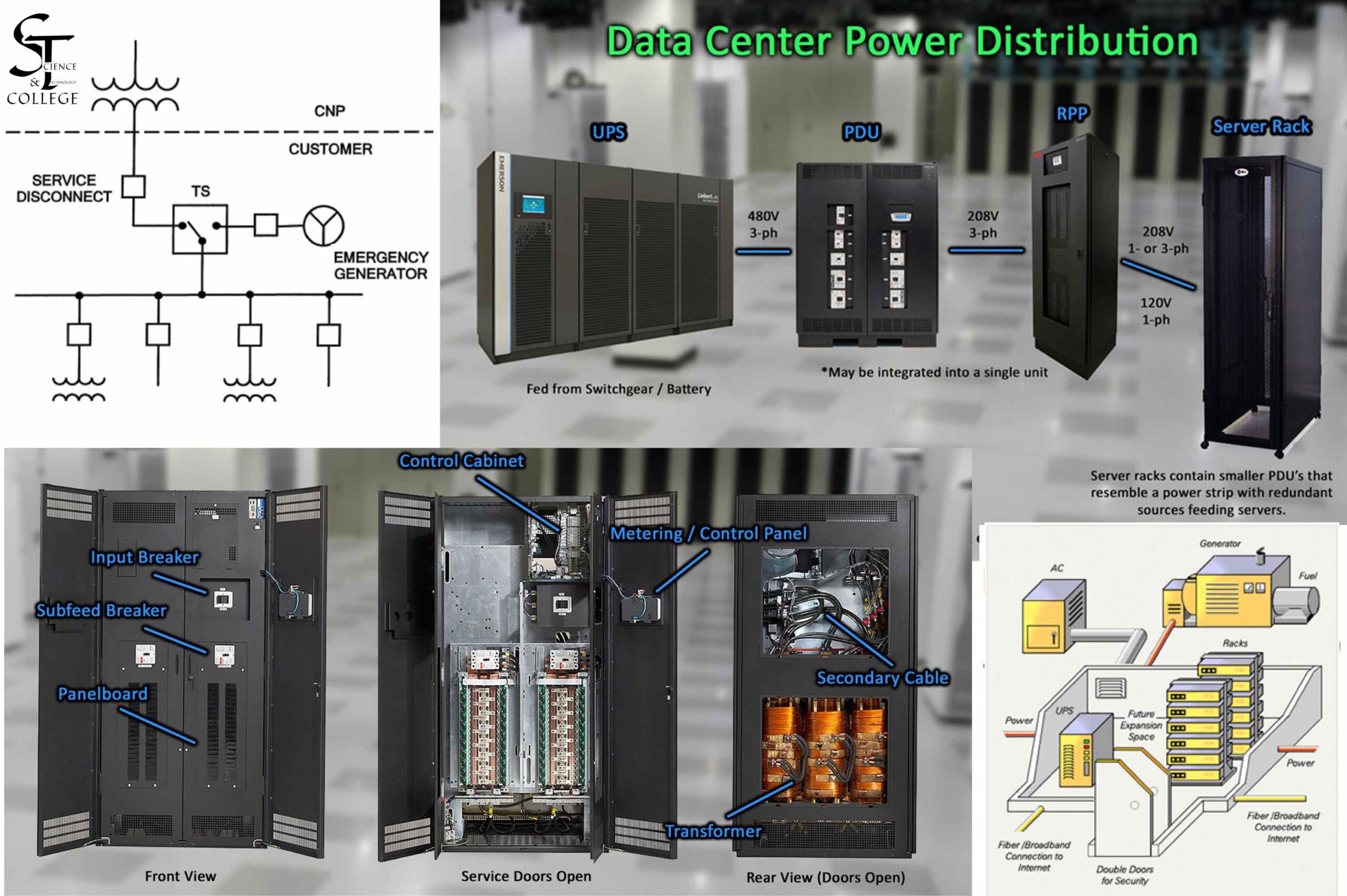 مراكز البيانات هي موطن للبنية التحتية الحرجة للشبكة التي يجب أن تتوفر لها الطاقة الكهربائية في جميع الأوقات، ويتم تحقيق ذلك بأنظمة طاقة احتياطية للطوارئ. على هذا المستوى من التوزيع، يتم ربط المولدات التي تعمل بالديزل/البنزين ومفاتيح التحويل الآلية على مستوى التوزيع ذي الجهد المتوسط أو المنخفض.