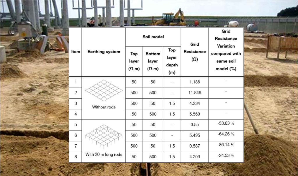 Table 1 presents simulation results for a 20m × 20m grid in uniform 100 Ω·m soil, demonstrating the comparative efficacy of these methods. Note that reducing (R_g) may increase the grid current (I_G), partially offsetting the reduction in GPR.