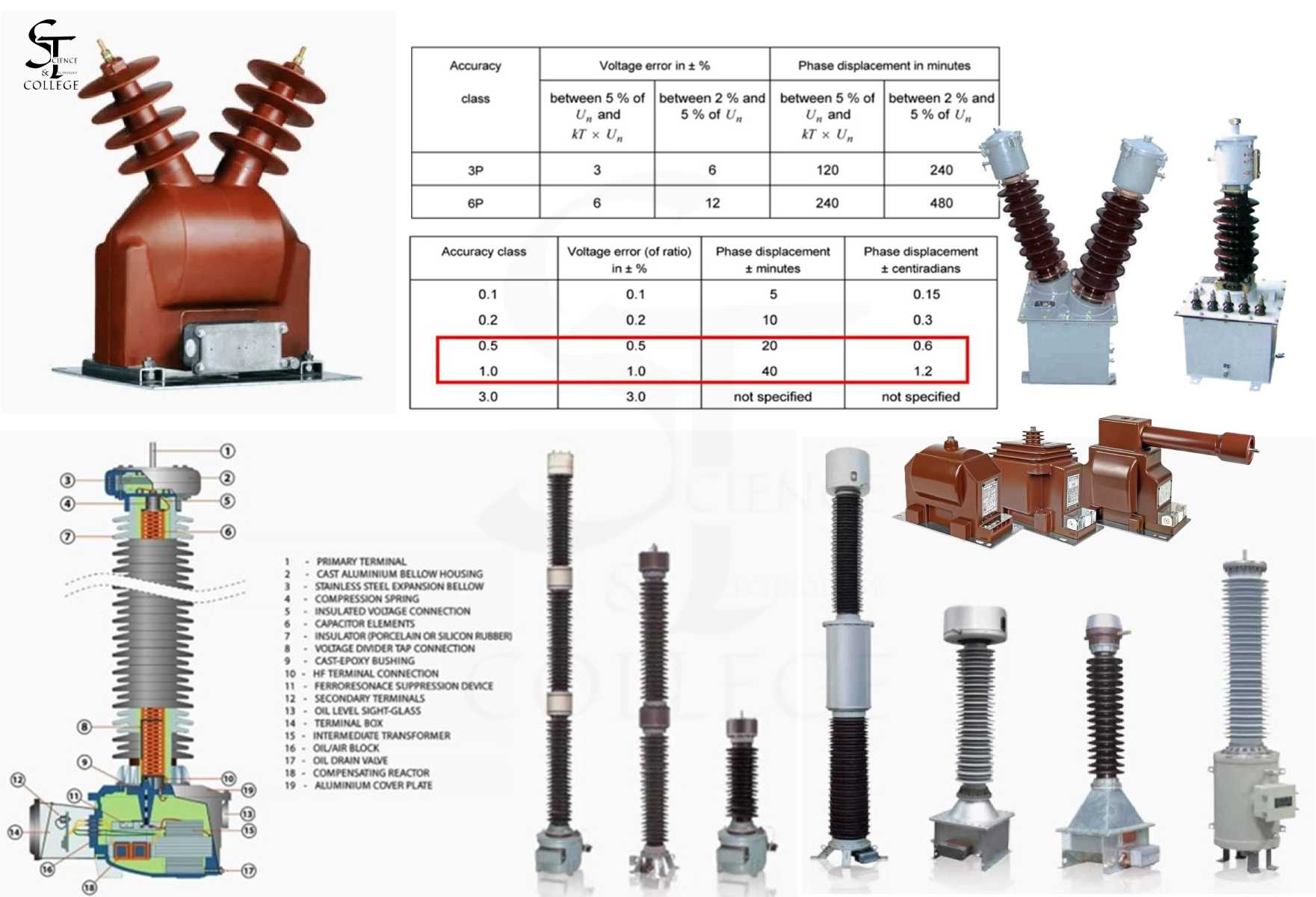 - محولات الجهد الاستقرائي ( المستخدمة في خط الجهد العالي للجهد حتى 520 كيلو فولت)