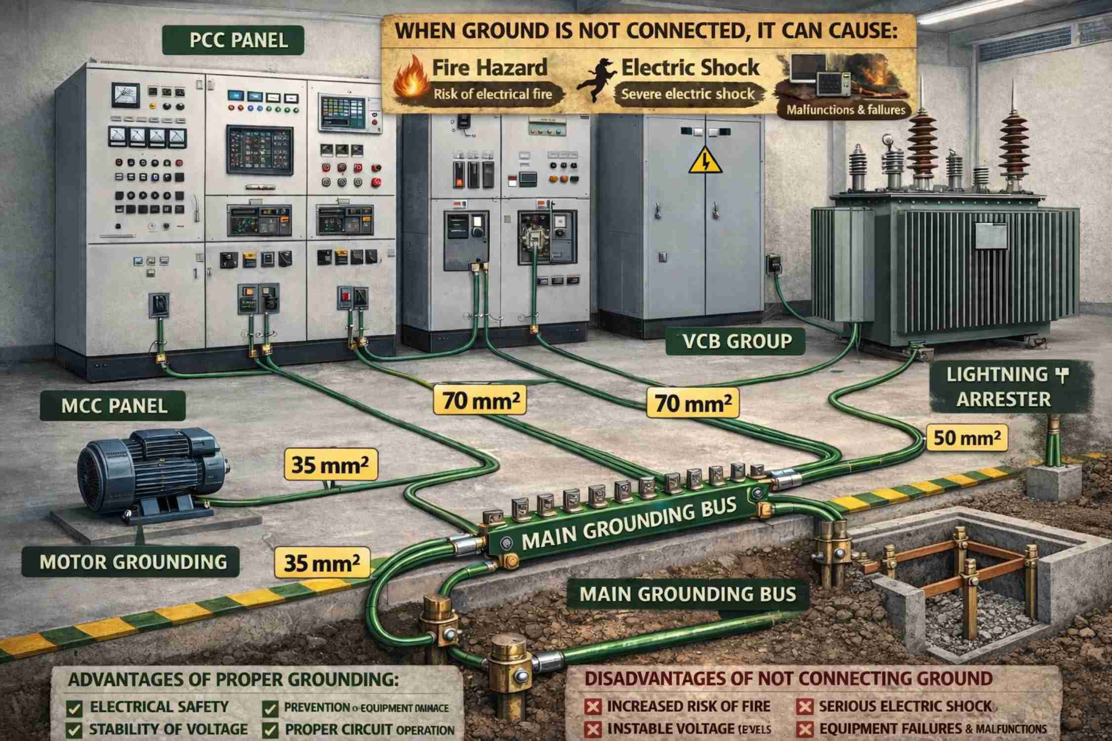 - PCC and MCC Panel grounding – Ensuring control centers have a zero-reference point.