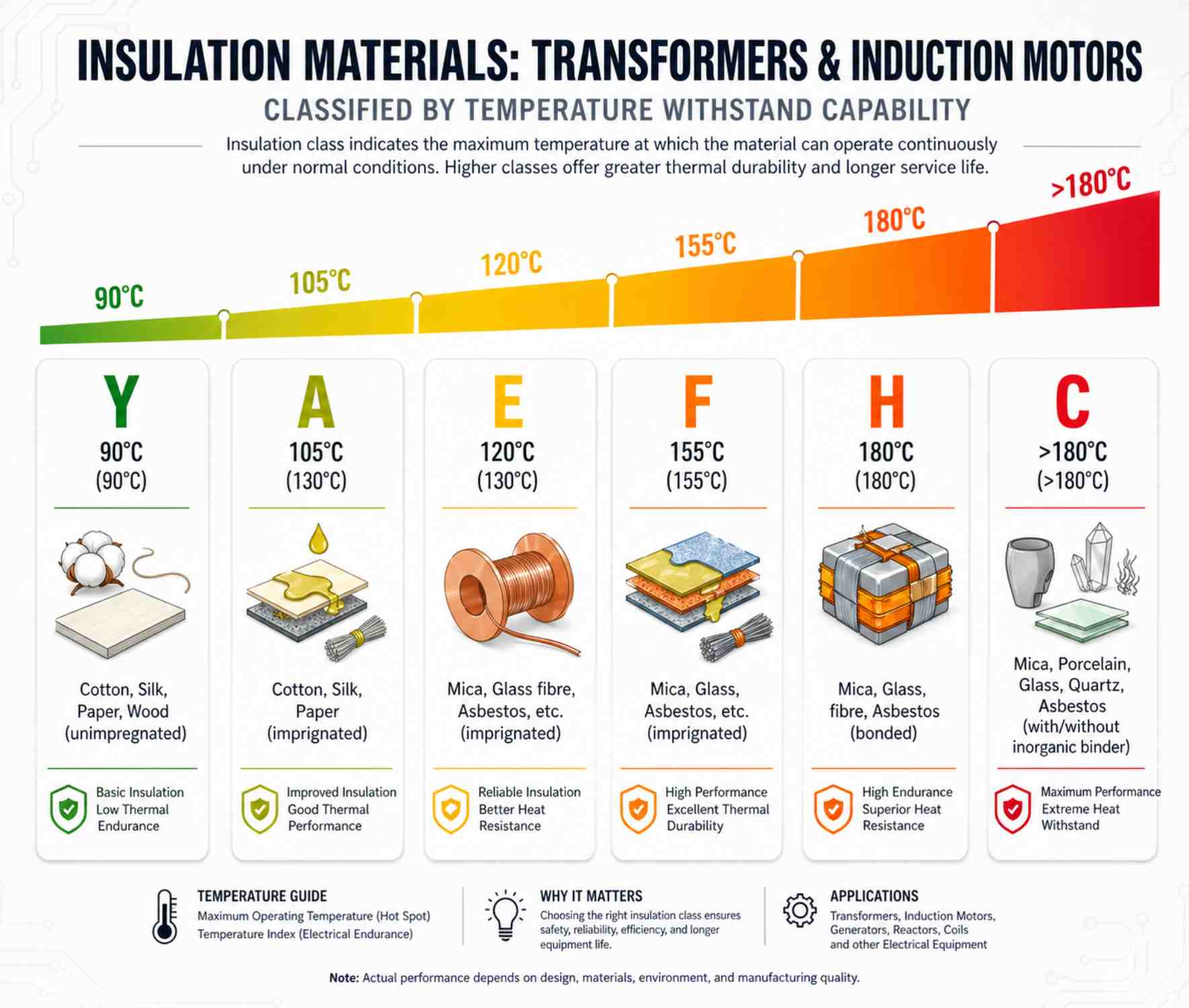 Let’s explore the major insulation classes used in transformers and induction motors.