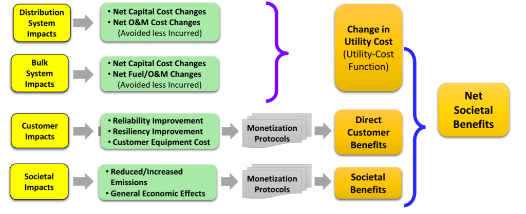 - Value of Resource (VOR): Isolates and values utility service costs and DER benefits, incorporating both positive and negative externalities. Key value components include: