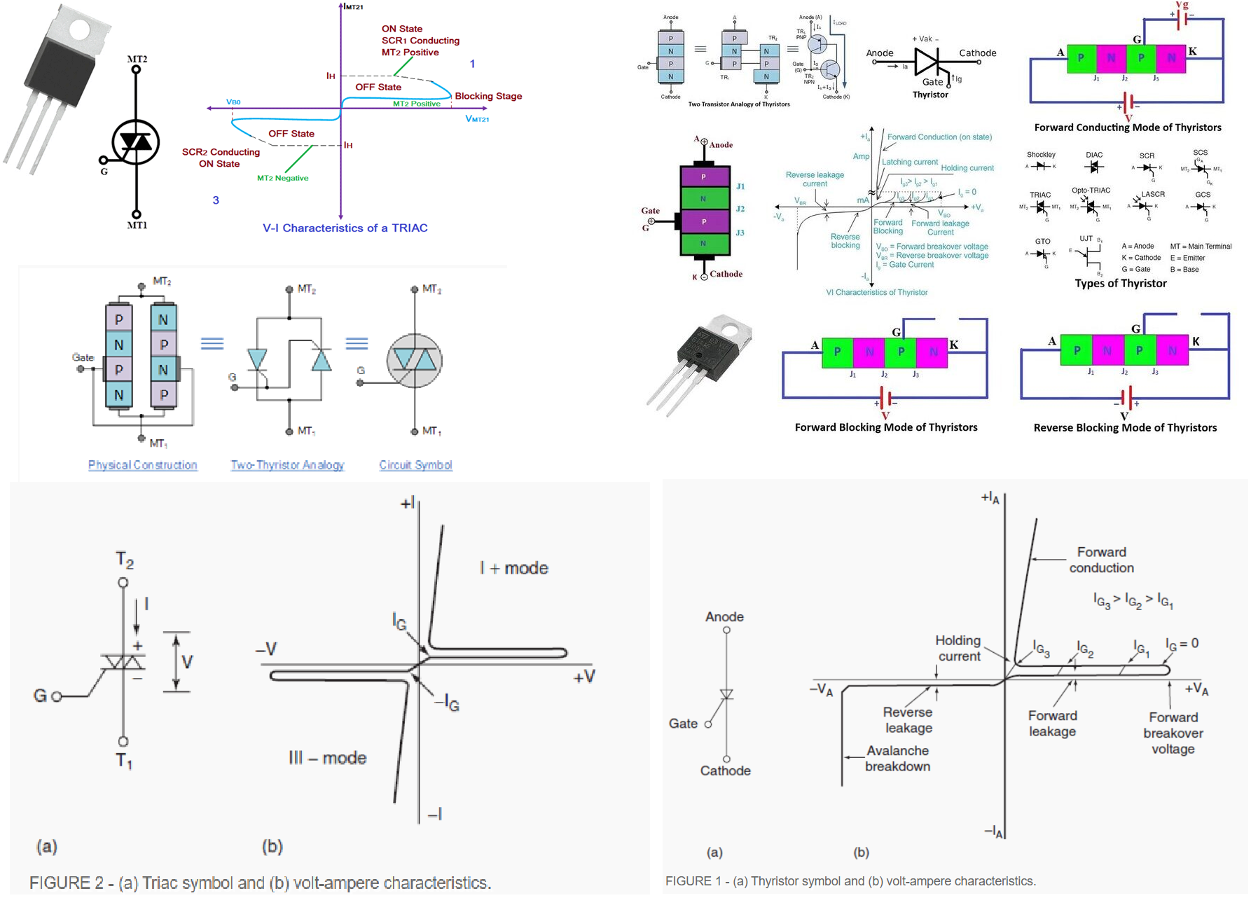 | التطبيقات | تحكم أحادي الاتجاه، تصحيح متحكم به | تحكم ثنائي الاتجاه في التيار المتردد |