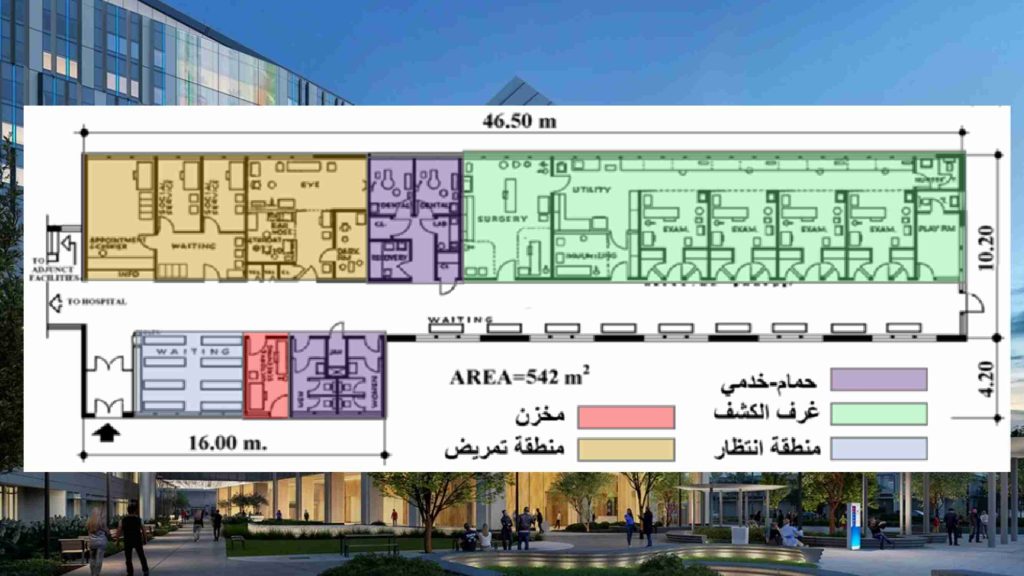 المساحات والأبعاد المطلوبه في تصميم العيادات الخارجية