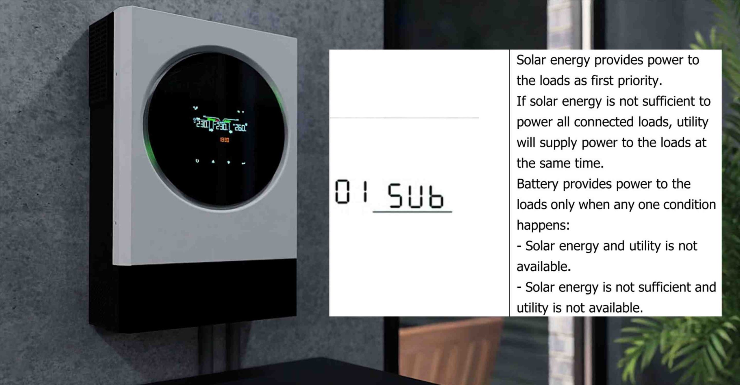 In SUB mode, the inverter intelligently balances sources: