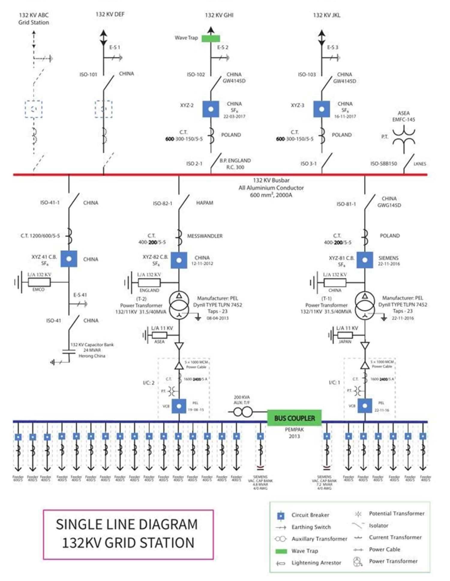 The SLD provides a high-level overview of how power is generated, transmitted, and distributed, detailing the major components, including generators, transformers, circuit breakers, and busbars. Critically, it also indicates the location and connection of the instrument transformers and protective devices.