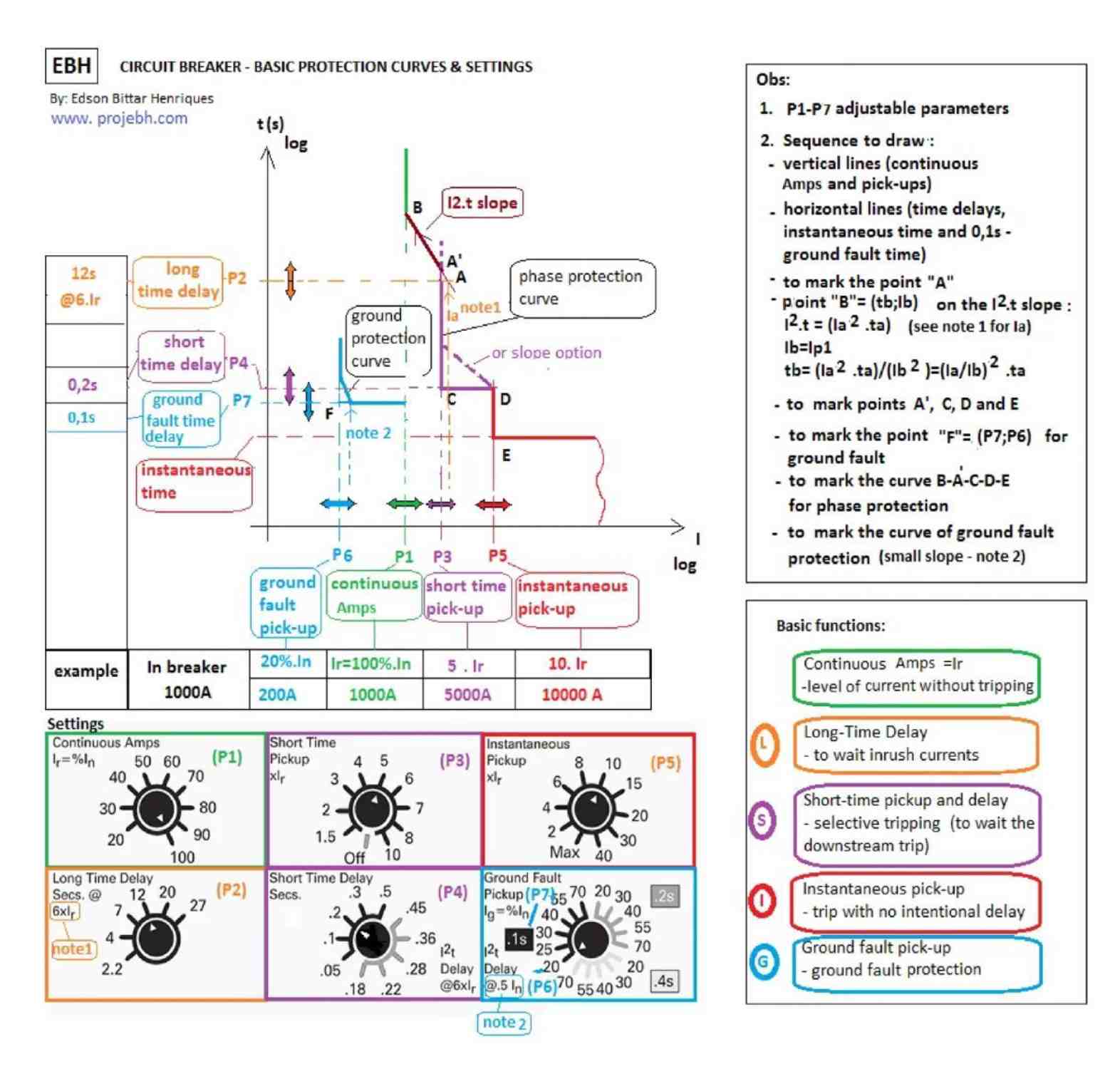 The accompanying time-current characteristic curve illustrates how these four functions interact: