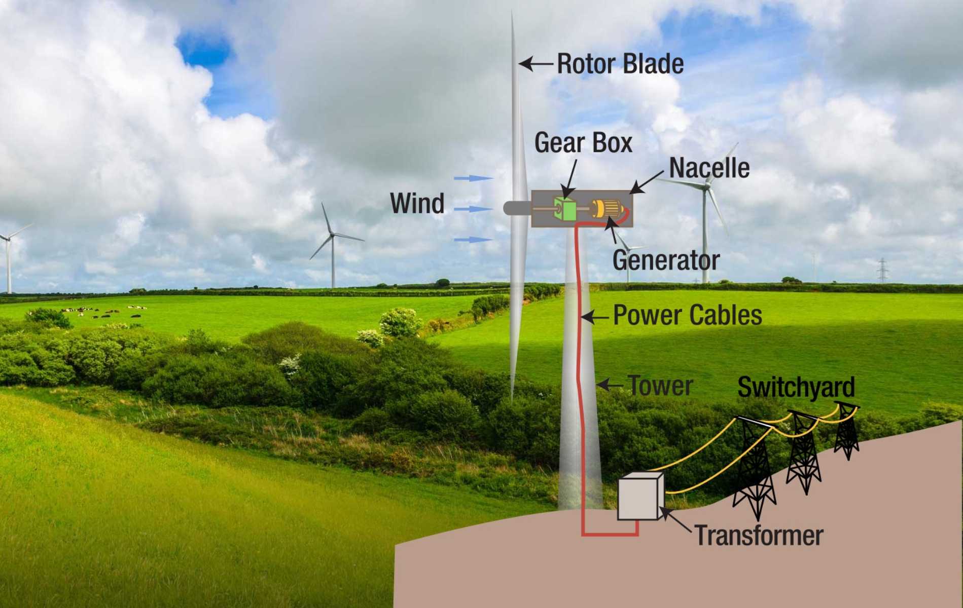 - البدء والإيقاف: يبدأ التوربين عندما تصل سرعة الرياح إلى حد معين (عادة حوالي 3-4 م/ث) ويوقفه عند speeds عالية جدًا (حوالي 25 م/ث) لمنع التلف.